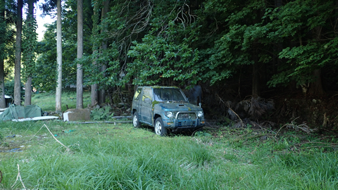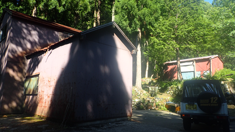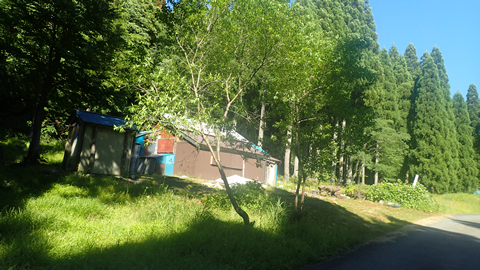 ほぼ対向車もない状態の道を走っていると、廃村を発見。